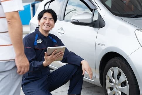 イデックス佐賀車検では、車検前の事前点検を行っています。 国家資格整備士がお車をすみずみまでしっかり点検した上で「どうしてこの見積金額になったのか?」をお客様へ丁寧に説明いたします。